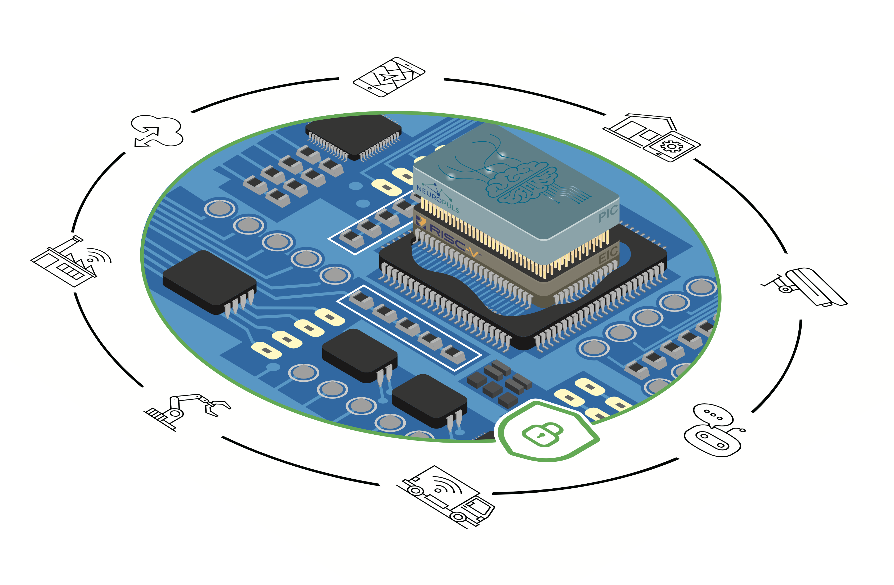 NEUROPULS will develop -for the first time- secure hardware accelerators based on novel neuromorphic architectures and PUF-based security layers leveraging the benefits offered by the integration of photonics, PCMs and III-V materials. This integration will provide superior security, energy-efficiency, and speeds for spiking and formal recurrent NNs when compared to current available technology for the selected use-cases.